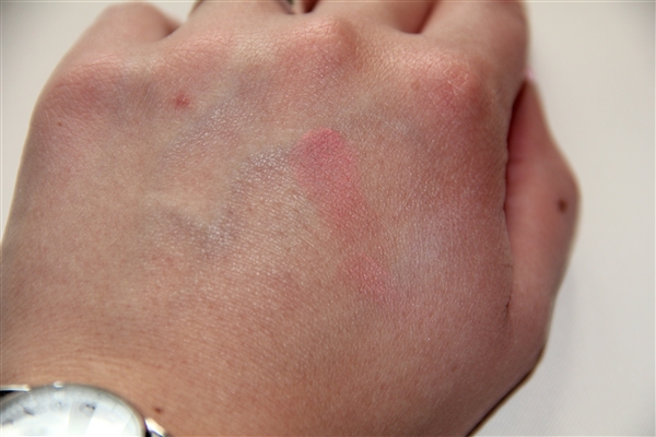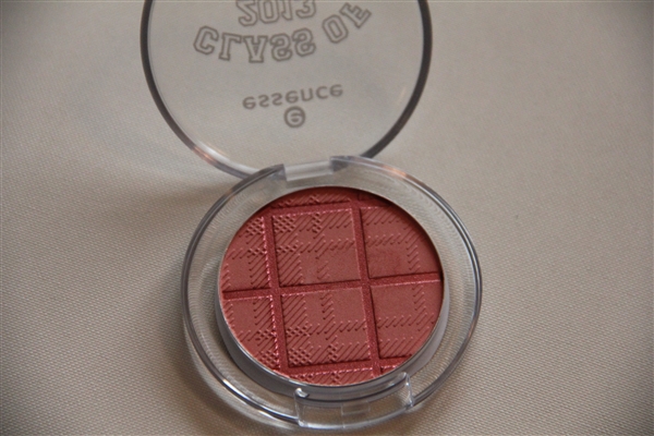Het is echt een mooie kleur. Oudroze, beetje peachy achtig, met hele lichte shimmer. Hij is dus niet helemaal mat. De overspray (de donkerroze/rode lijntjes) geven best wat shimmer en kleur af. De eerste paar keren dat ik de blush gebruikte, moest ik uitkijken dat ik niet teveel op deed. De overspray slijt er snel af, wat ik in dit geval niet erg vond; er is een mooie kleur overgebleven die makkelijk aan te brengen is.