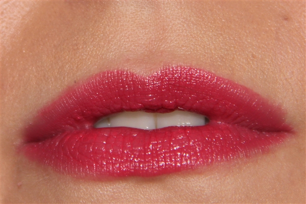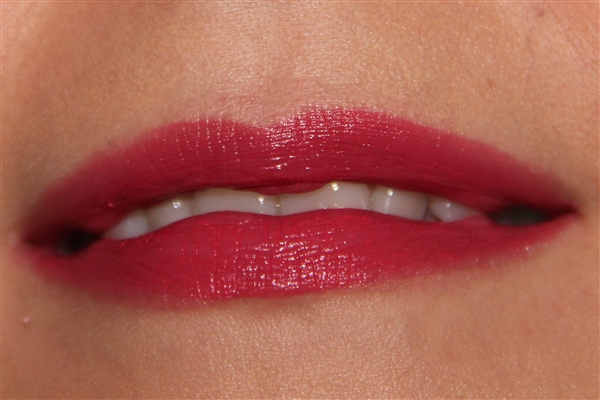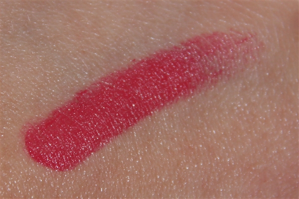 Dit is op mijn hand, met 1 keer de lipstick erover heen halen. Hij is perfect gepigmenteerd. Ook smeert hij heel romig, wat ik wel altijd prettig vind aan iets wat ik op mijn mond smeer. Hij voelt bijna verzorgend aan, en voelt niet zwaar op de lippen.