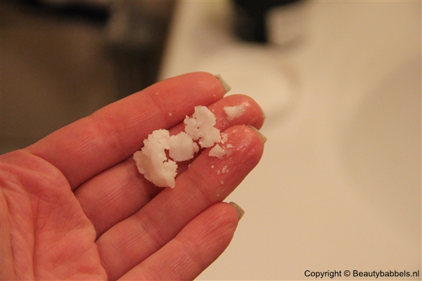 Ik pak wat kokosvet in mijn handen en wrijf het door mijn handen om het vloeibaar te krijgen. Dit gaat makkelijker dan je denkt!