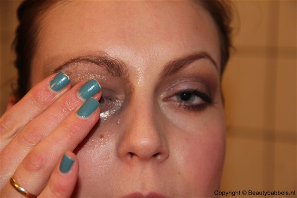 Ik wrijf het zachtjes met mijn handen over mijn make-up. Het lost gewoon op zoals je ziet.