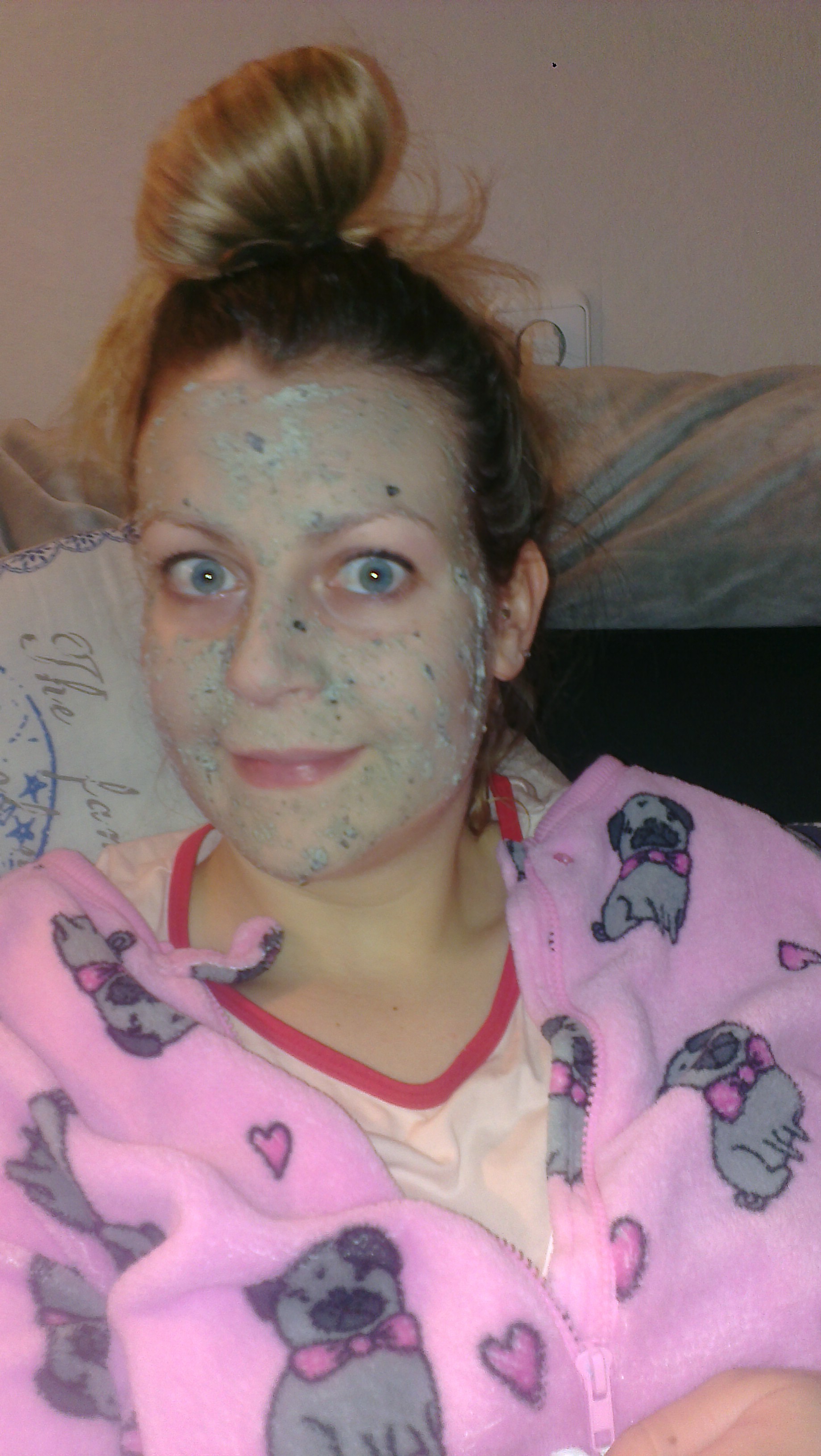IMAG0630 Tijd voor een maskertje. Deze is van Lush. Ik vind het altijd zo heerlijk om ‘s avonds fris gedoucht, in mijn onesie op de bank te zitten met een maskertje op :)