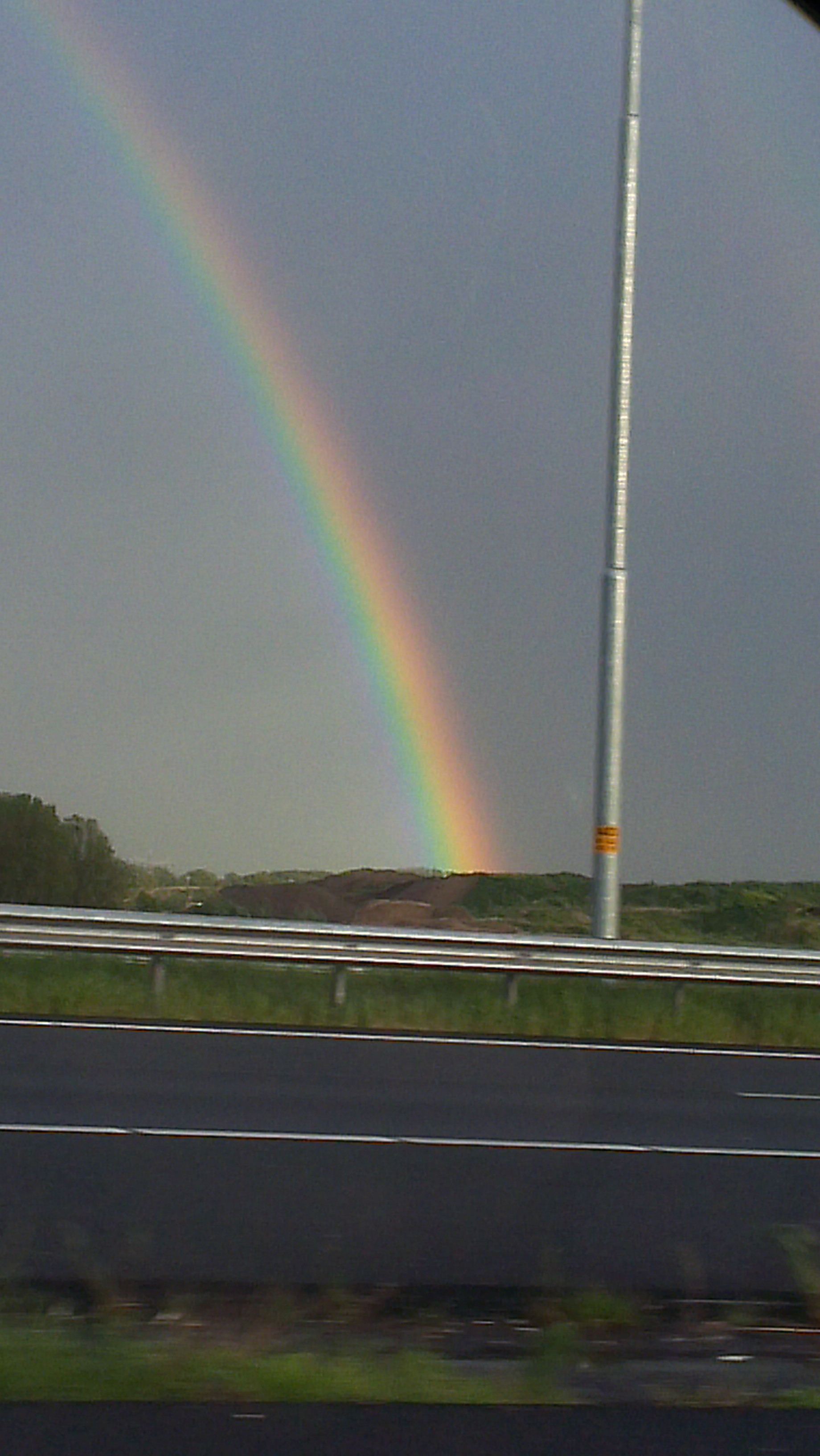 IMAG0685 Toen we weer naar huis reden, zagen we een hele mooie regenboog. Hij liep helemaal door, en de kleuren waren prachtig fel. Ik heb nog nooit zo’n mooie regenboog gezien! Tim en ik waren zo aan het kijken dat we een afslag miste haha.