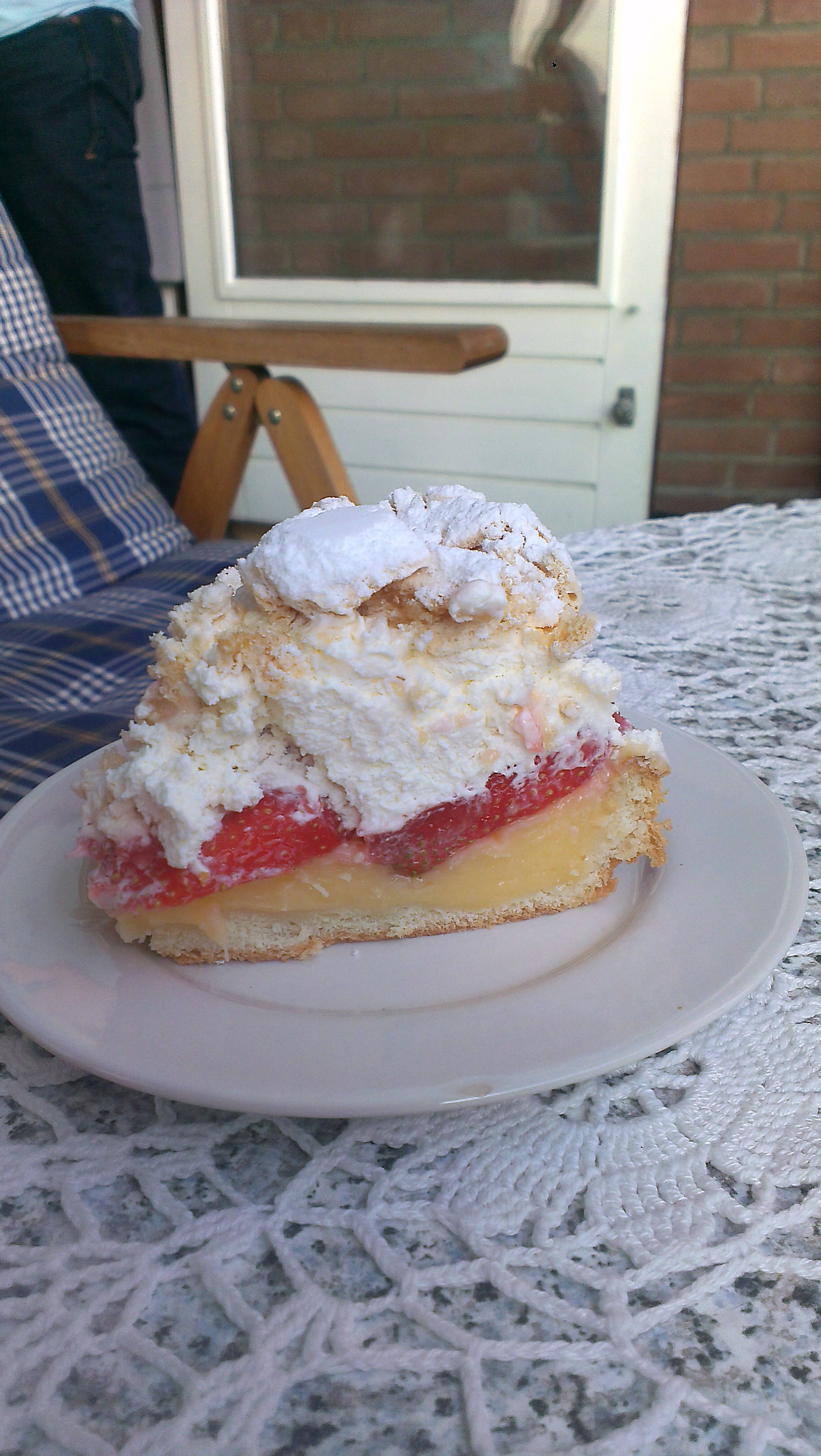 Taart van de oma van mijn lief gekregen. Ze had ingeslagen voor Moederdag, en wij kregen de laatste stukjes mee. Van de lekkerste bakker uit Valkenburg, jammie!