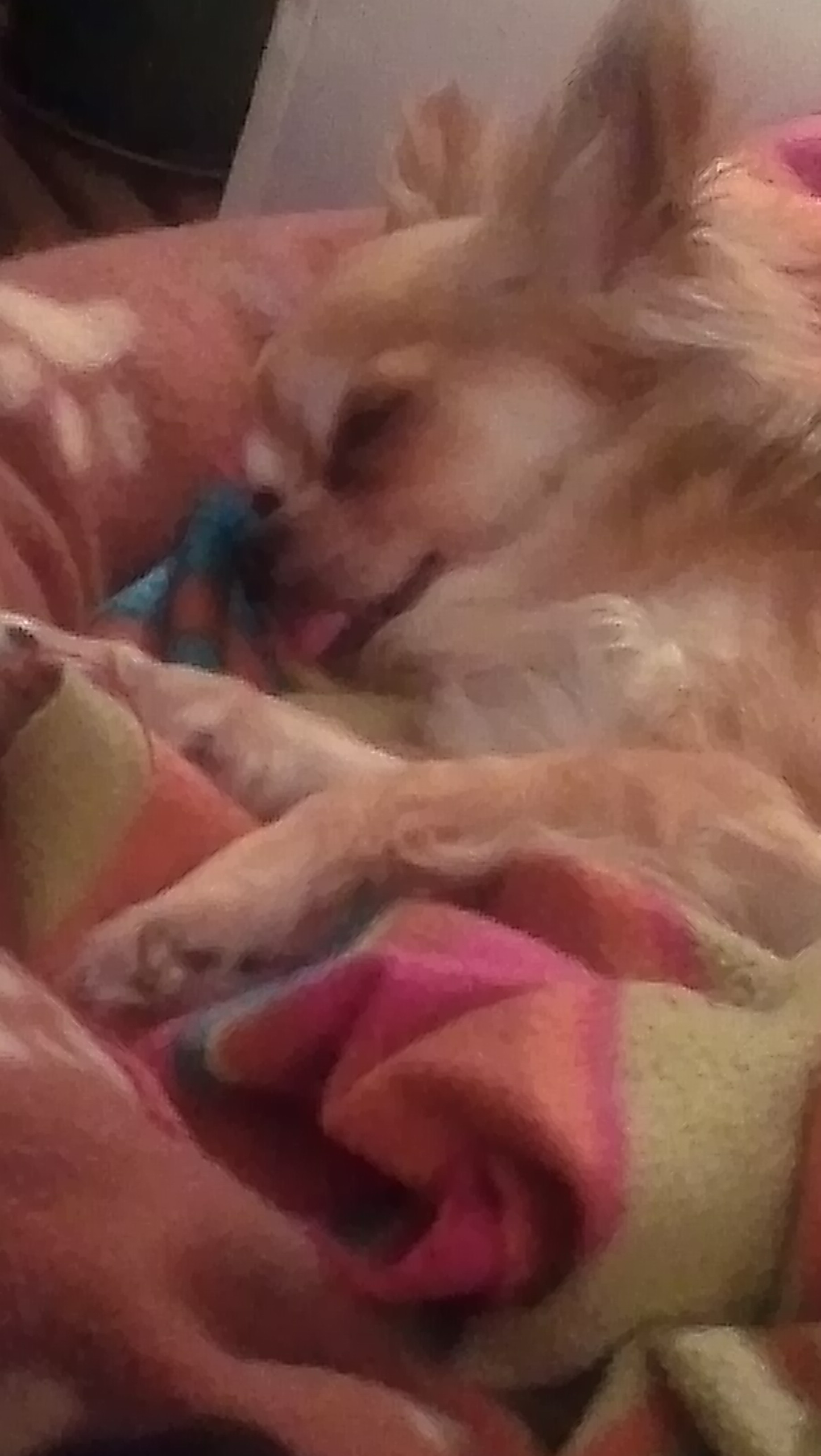 IMAG0776Lizzy lag heel lief te slapen met haar tongetje uit haar mond. Zo zie ik haar nooit! Ik vond het zo cute.