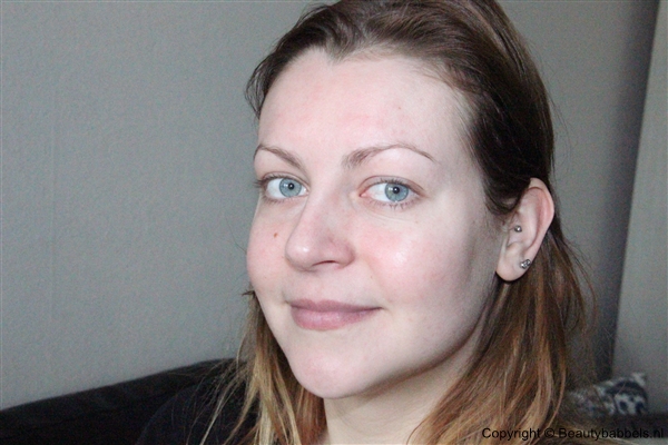 En hier heb ik mijn foundation eroverheen aangebracht. Mijn huid ziet er nu mooi egaal uit.
