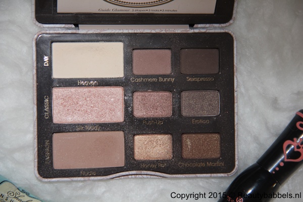 ogen1Uit dit palette gebruik ik graag Heaven op mijn bewegend ooglid, Silk Teddy als highlighter op mijn wenkbrouwbot en binnenste ooghoek, Cashmere Bunny in mijn crease, en in mijn buitenste ooghoek gebruik ik nog Sexpresso.