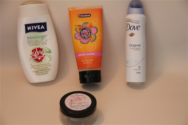 Voor lichaamsproducten heb ik een fijne deodorant van Dove opgemaakt. Deze bevalt mij goed, al heb ik een nieuwe favo deo (van de review vorige week). De scrub van Kruidvat is erg fijn, ruikt lekker en werkt prima. Al vind ik de scrub van The Beauty Bakery in Frosted Cupcakes stukken fijner. Wat ruikt deze goddelijk!! Ik heb inmiddels nieuwe scrubjes liggen van The Beauty Bakery..Jammie! De douchegel van Nivea was ook lekker, subtiele maar lekkere geur en deed goed zijn werk.