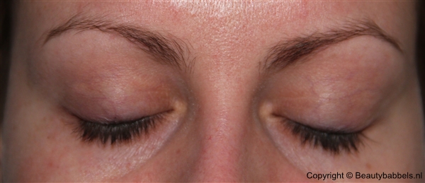 Ook hier is het subtiel (op foto is het moeilijk vast te leggen), maar je ziet dat mijn oogmake-up er op mijn rechteroog er nog prima opzit, en op het linkeroog zie je dat de oogmake-up een beetje in de lijntjes is getrokken. In het echt is dit verschil nog duidelijker.