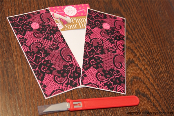 In de envelop zitten 2 schoenenstickers, instructies en een (scherp!) mesje.