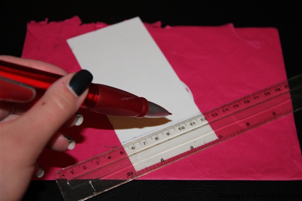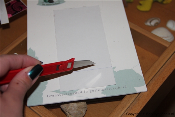 En snijden maar! Onder de sticker leg ik een dik blok papier (ik had even niets anders voor handen) zodat ik de tafel niet beschadig.