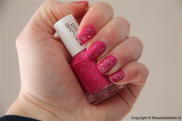 Een vrolijk, roze lakje van Essie (Tour de Finance) met mijn geliefde topcoat van Essence (College Hero). Wat een mooie combi!
