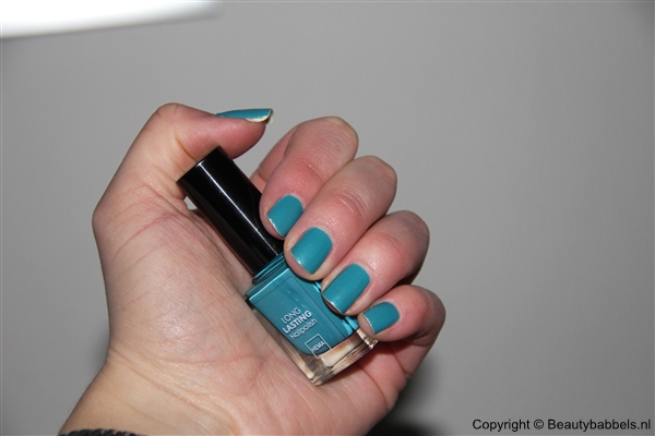 Dit lakje heb ik pas gekocht dus die moest getest worden. Een vrolijke, aanwezige kleur blauw. Van de Hema in 839. Ik vind hem erg mooi, helemaal voor de lente en zomer!