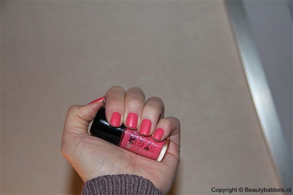 Dan weer een favoriet kleurtje van me; Bubblegum Pink van NYC. Dit keer heb ik er een matte topcoat van Catrice overheen gedaan voor een ander effect. Heel erg geslaagd vind ik het.