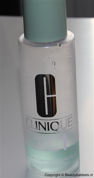 Dan dep ik mijn gezicht droog en ga ik het met een tonic van Clinique reinigen en exfolieren.